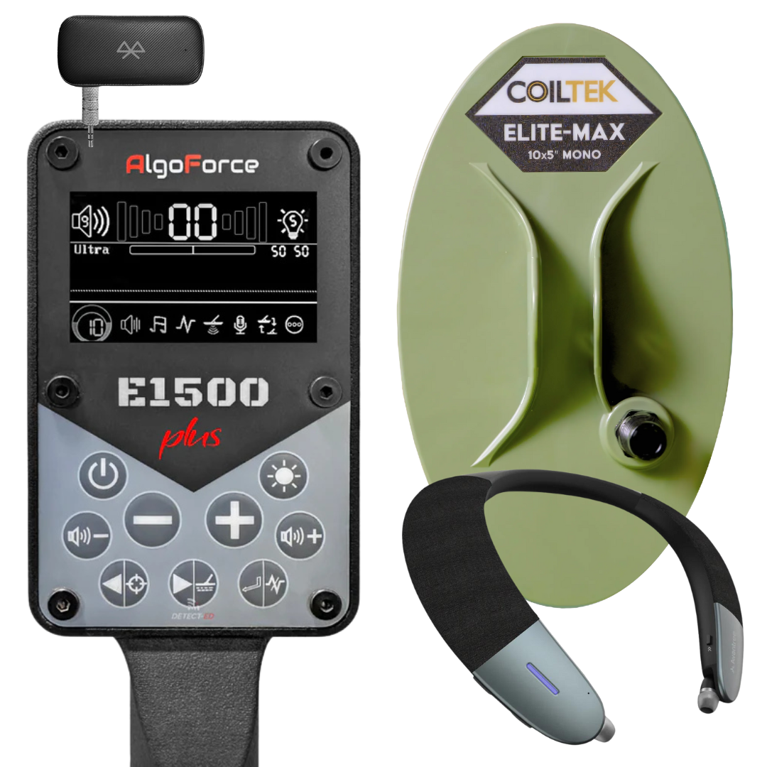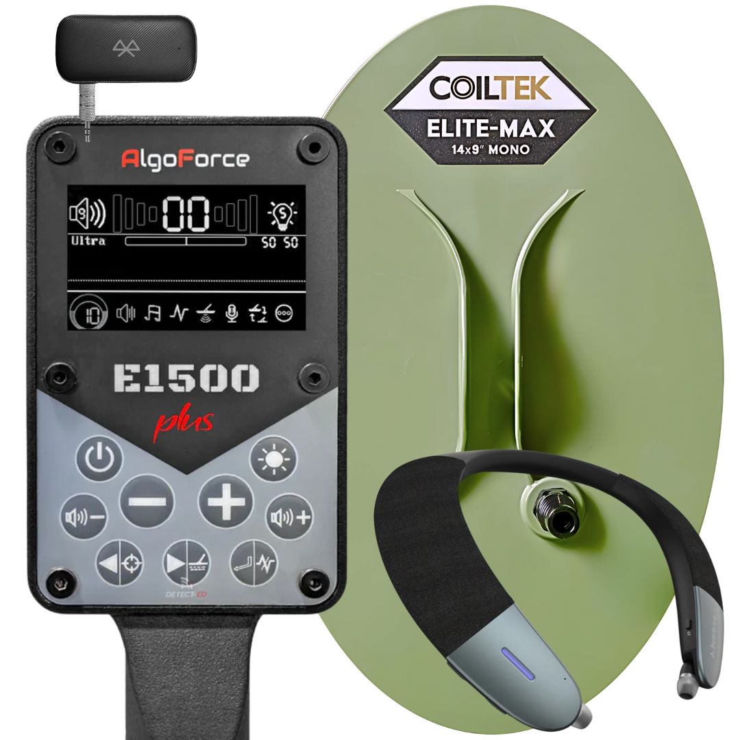 Never before has there been so many coil options for a detector! The E1500 is compatible with any of the extensive list of 5 Pin (GP/SD/GPX) Mono Coils (Excluding GPX6000 Coils). Meaning there's SO many coils in production for it, most notably Coiltek and Nugget Finder Coils plus decades of additional compatible options. The AlgoForce can use any of the coils made for the GPX4500 & GPX5000 for example.